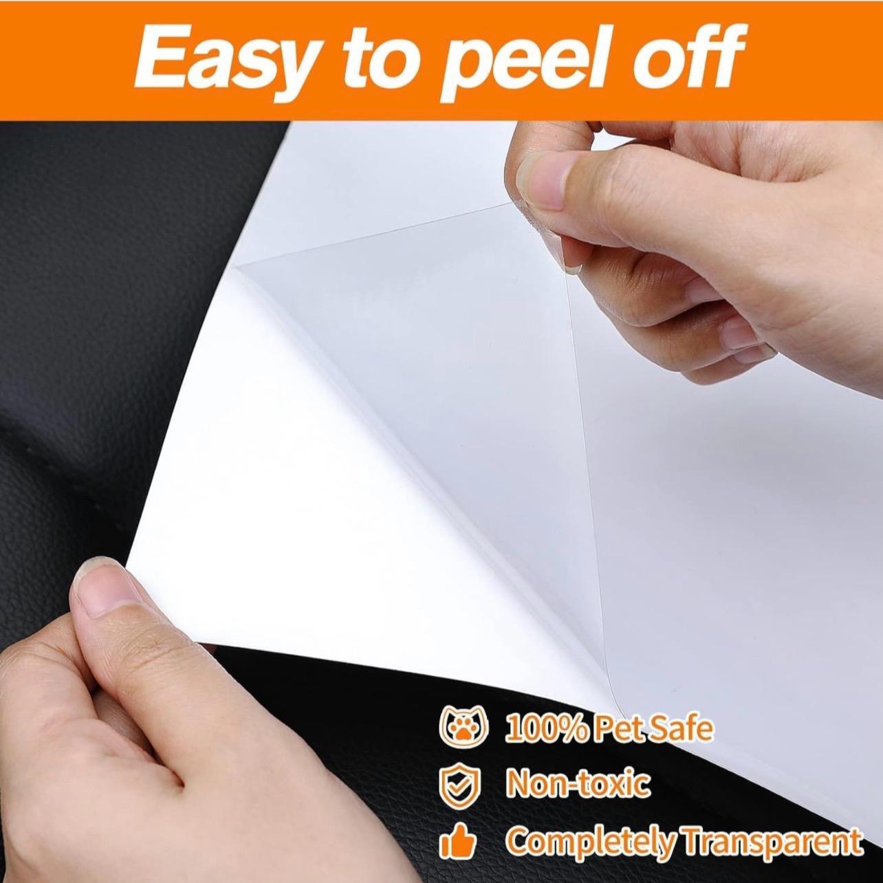 Cat scratch furniture protector is 100% highly transparent,invisible on your furniture and completely blends in with your upholstery.This Plastic anti cat scratch furniture protector is thick enough,resistant to wear and scuffing,effectively protects the surface of your couch.You no longer have to worry about scratched sofas,corners,bed edges,tables and chair legs.