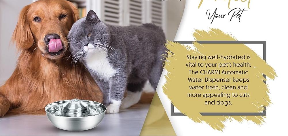 - LARGE 67-oz CAPACITY and a 360-degree bowl design makes the Charmi Cat and Dog Water Fountain ideal for multi-pet households. It makes clean, healthy drinking water available without frequent refilling.